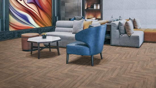 AMBIENT HOUSE – коллекция модульной напольной SPC-плитки с укладкой «елочкой» от Tarkett.
